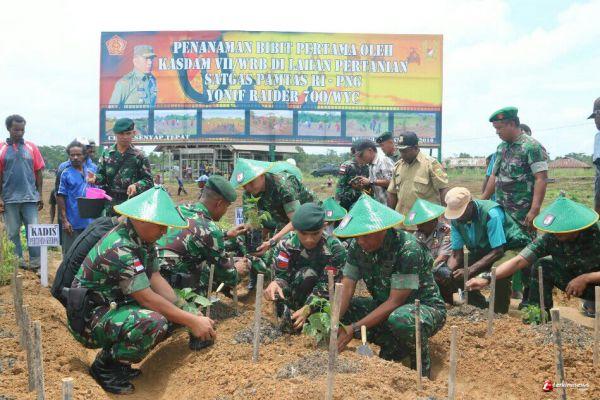Kunjungan Kasdam VII/ Wirabuana Brigjen TNI Supartodi untuk meninjau para prajuritnya yang sedang bertugas di perbatasan diajdikan momentum oleh Dansatgas Yonif Raider 700/WYC untuk mewujudkan cita - cita Bayatlyon ini untuk memajukan perekonomian masyarakat perbatasan dengan melaksanakan penanaman pertama secara serentak lahan tidur yang berada di Kotis Satgas di daerah Senggi.
