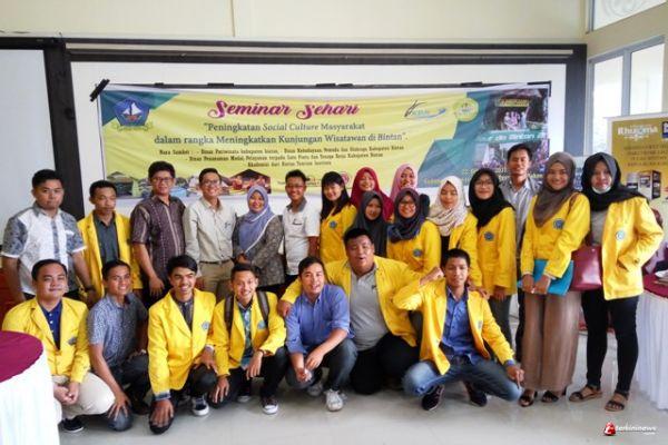BINTAN - Himpunan Mahasiswa Sosiologi (HIMSOS) bekerjasama dengan Komunitas Diskusi Nusantara menggelar seminar sehari peningkatan Wisatawan di Kabupaten Bintan, pada Rabu 22/2 di Gedung Dekranasda Kabupaten Bintan.