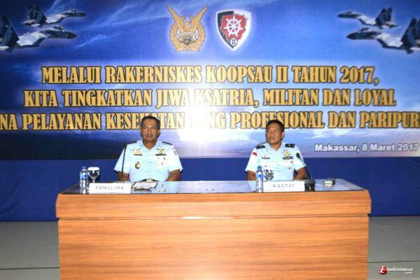 Kegiatan tersebut dihadiri Kepaia Staf (KAS) Koopsau II, Marsekal pertama TNI Donny Ermawan T, M.D.S Ir Koopsau II, para Asisten Kaskoopsau Il dan para Staf Ahli Koopsau II, serta para pejabat koopsau II Iainnya, dengan tema "melalui rakerniskes koopsau II tahun 2017, kita tingkatkan jiwa ksatria, militan dan loyalitas guna pelayanan kesehatan yang profesional dan paripurna".