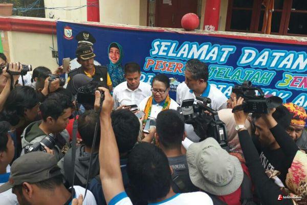 Kunjungannya tersebut terkait program Kementrian Pemberdayaan Perempuan dan Perlindungan Anak untuk menghentikan tiga hal yang selalu menjadi permasalahan di Indonesia, sekaligus melakukan sosialisasi jelajah three ends ke Kota Makassar, Minggu (23/04/2017).