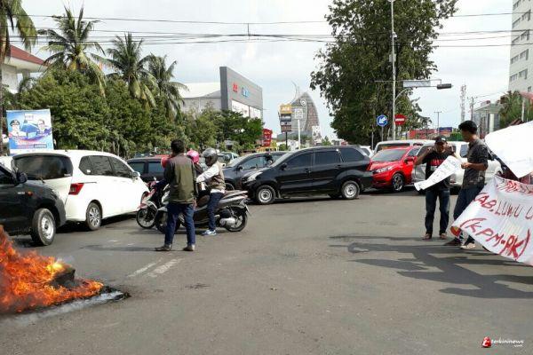 MAKASSAR, -- Aksi Unjuk rasa yang di lakukan Koalisi pemuda dan mahasiswa pemerhati keadilan memberikan Ucapan Dirgahayu Kabupaten luwu utara yang ke 18, Semoga menjadi kabupaten berkembang di bawah kepemimpinan bupati Cantik Indah Putri Indriani di jalan pertigaan hertasning pettarani makassar.