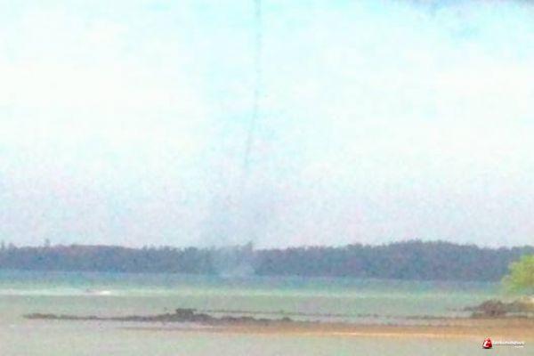 LINGGA : Angin puting beliung tampak dilaut kampung Penarik desa Kelumu kecamatan Lingga pada saat angin kencang, Selasa(06/06/2017) sekitar pukul 9 pagi ini.
