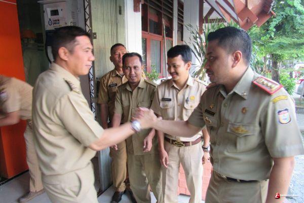 Sesampainya di kantor Dinas Pendapatan Daerah, Deng Ical langsung memasuki ruang pusat pelayanan dan menyalami satu persatu para pegawai.