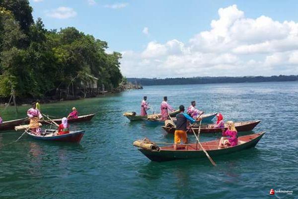 LINGGA - Prosesi jemput nikah Komunitas Adat Terpencil (KAT) pulau Lipan berkiyau menuju pulau Penuba. Prosesi pesta nikah jemput penganten baru tersebut dihadiri langsung oleh ketua PKK Kabupaten Lingga Hj Heryulita.