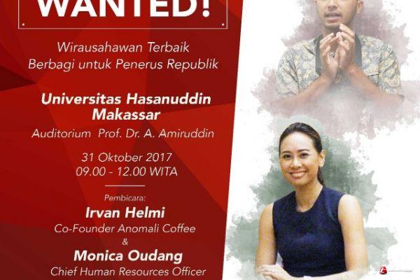 Kegiatan yang diawali dengan visit media ke redaksi media harian lokal di Makassar ini akan menyampaikan kehadiran pengusaha Irvan Helmi, perintis Anomali Coffee serta Monica Oudang dari Go-Jek Indonesia mencari wirausahawan muda, Minggu (29/10/2017), terkininews.com.