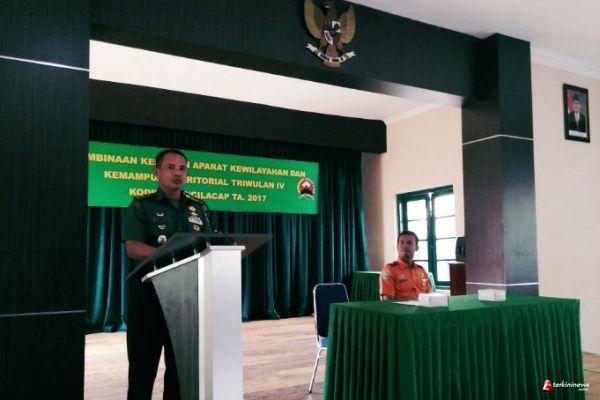 CILACAP, -- Dalam rangka meningkatkan kesiapan prajurit dalam pelaksanaan pembinaan dan pemberdayaan wilayah pertahanan di darat, Kodim 0703/Cilacap menggelar kegiatan Pembinaan Kesiapan Aparat Kewilayahan (Binsiap Apwil) dan Kemampuan Teritorial (Puanter) Triwulan IV TA. 2017, berlangsung di Aula Satya Kartika Makodim 0703/Cilacap, Jl. Jenderal Soedirman D-1 Cilacap.