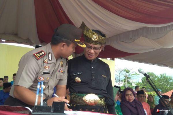 LINGGA - Kepolisian Resor (Polres) Lingga bersama pemerintah kabupaten Lingga melakukan penandatangan MoU kerjasama dibidang pendidikan tes dan perekrutan Polri.