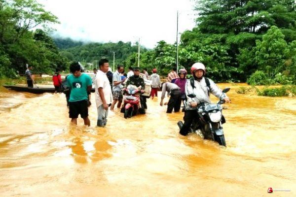 Banjir tersebut terjadi sejak beberapa hari dan puncak naik air pada selasa lalu, dengan tinggi air berkisar 2 hingga 4 meter yang menggenangi pemukiman Warga. dan Air pun meluap sampai di jalan umum mengakibatkan macet arus lalulintas.