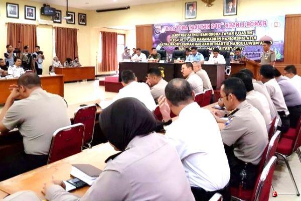 KENDARI, -- Mapolda Sulawesi Tenggara, menggelar rakor linsek dalam rangka operasi ketupat Anoa-2018 di Aula Dachara, Mapolda Sultra Rabu, (30/5/2018). Jalan Haluoleo kota Kendari.
