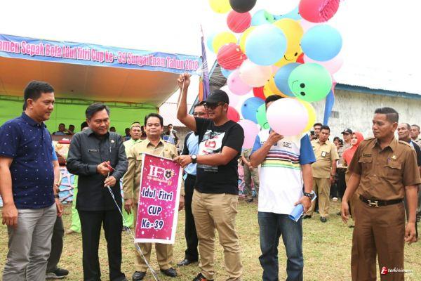 BINTAN - Bupati Bintan H Apri Sujadi, S.Sos secara resmi membuka Turnamen Idulfitri Cup ke 39 Sungai Enam Tahun 2018 di Lapangan Sepakbola Sungai Enam, Senin (25/6) sore. Seperti tahun-tahun sebelumnya, open turnamen Idul Fitri Cup Sungai Enam dilaksanakan dengan sistem setengah kompetisi. 32 klub dibagi menjadi delapan grup (pool). Setiap pool terdiri dari empat klub, masing-masing akan menjalani tiga kali pertandingan. Klub yang menjadi juara dan runner-up pool, akan lolos ke babak 16 besar. Selanjutnya akan menjalani sistem gugur, hingga ke babak grand final.