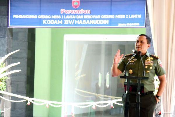 Demikian pernyataan Pangdam XIV/Hasanuddin Mayjen TNI Agus SB dusampaikan saat meresmikan gedung perwakilan Kodam XIV/Hasanuddin