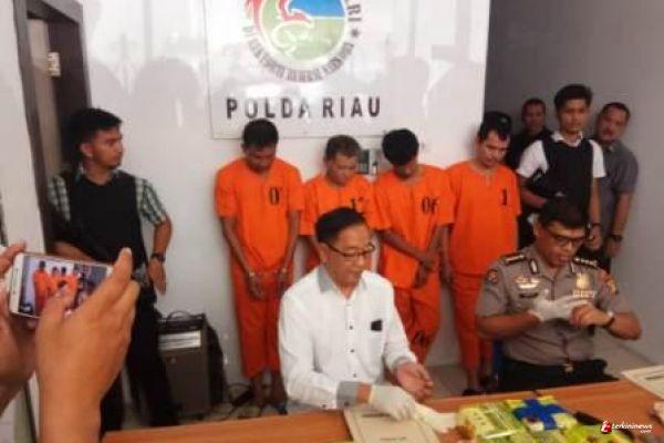 PEKANBARU - Direktorat Reserse Narkoba Kepolisian Daerah Riau berhasil tangkap HE yang merupakan kakek dengan tujuh cucu yang menjajakan narkotika jenis daun ganja kering di Pekanbaru.