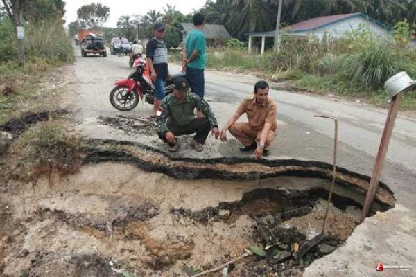 Jalan Provinsi dari Petapahan - Simpang Gelombang di Kabupaten Kampar Terancam Putus