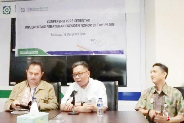 MAKASSAR, -- Implementasikan Peraturan Presiden Nomor 82 tahun 2018. BPJS Kcu Makassar menggelar Konfrensi Pers penyebar luasan informasi dalan menyempurnakan Payung Hukum JKN-KIS.