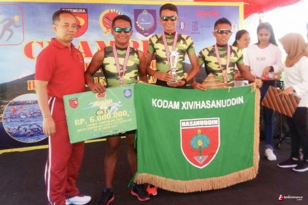 Atlet Kodam XIV/Hasanuddin dibawah asuhan Mayor Inf Mifdal selaku manager tim, kembali rajai lomba Triathlon dalam rangka HUT Korem 152/Babullah, berlangsung di Ternate Maluku Utara, Sabtu (16/02/2019) terkininews.com