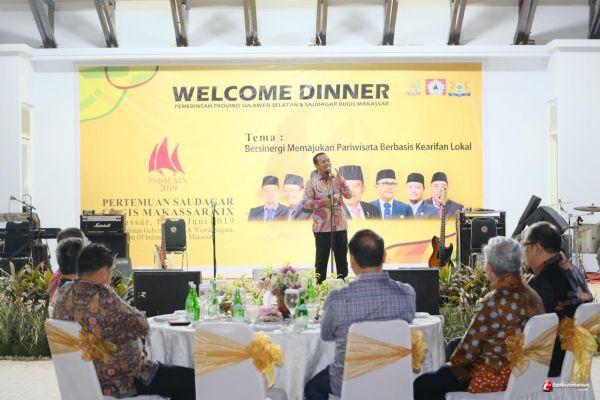 Makassar - Welcome Dinner Pertemuan Saudagar Bugis Makassar (PSBM) Ke-XIX (19) di gelar di Rumah Jabatan Gubernur Sulsel, Sabtu (15/6). Dengan tema "Bersinergi Memajukan Pariwisata Berbasis Kearifan Lokal", Wagub Sulsel Andi Sudirman Sulaiman menghadiri kegiatan tersebut.