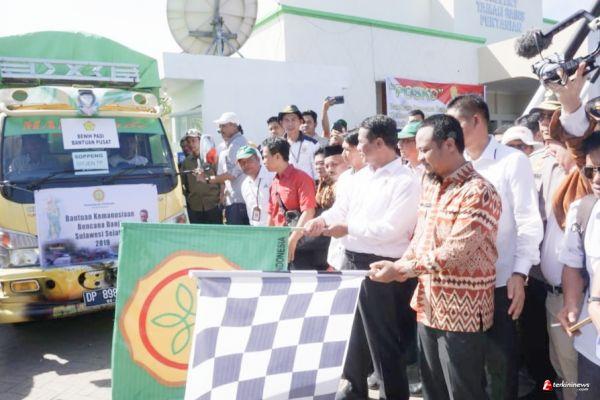 Bantuan diserahkan langsung oleh Menteri Pertanian RI. Andi Amran Sulaiman berupa paket Sembako dan benih pertanian yang selanjutnya dikirimkan ke wilayah-wilayah yang terkena dampak banjir di wilayah Sulawesi Selatan.