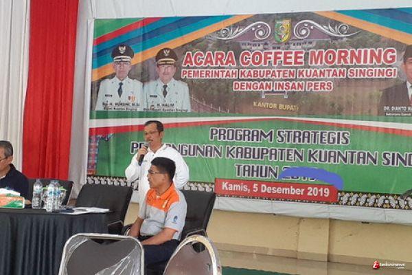 Program pembangunan Kuansing tahun 2020 ini dipaparkan Bupati Mursini, dalam kesempatan Coffe morning bersama awak media.