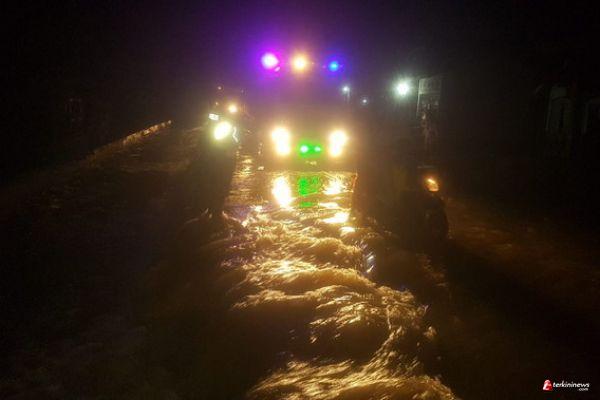 Ditambahkan Agus Widodo, personil BPBD Inhu yang diterjunkan kelapangan hingga malam hari, selain melakukan evakuasi juga membantu mengatur lalulintas di jalan provinsi menuju ke Tembilahan, Inhil yang saat ini mengantri karena kondisi jalan yang digenangi banjir akibat meluapnya Sungai Indragiri.