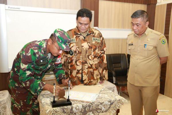 BARRU, -- Komandan Kodim (Dandim) 1405/Mlts, Letkol Kav Ali Syahputra Siregar SH.MH, selaku Dansatgas TMMD bersama dengan Bupati Barru menandatangani MoU kegiatan TNI Manunggal Membangun Desa (TMMD) ke-107, bertempat Kantor Bupati Barru Jl Sultan Hasanuddin No 82 Kabupaten Barru.