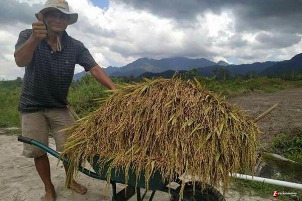 LINGGA, -- Di tengah keprihatinan atas pemberlakuan social distancing dimana masyarakat dibatasi beraktivitas di luar rumah untuk menghambat penyebaran virus corona, hari ini, Kamis (2/4/2020), kabar gembira datang dari para petani di Desa Panggak Darat, Kecamatan Lingga yang sedang melakukan panen raya.