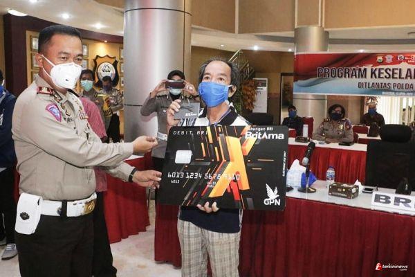 Pada kesempatan tersebut juga diberikan secara simbolis kartu ATM dan buku tabungan BRI oleh Dirlantas Polda Sulsel Kombes Pol Sentoe dan Pimpinan BRI Wilayah Sulsel, kepada1.823 penerima bantuan se Sulawesi Selatan, yang sebelumya telah diberikan pelatihan . Bantuan sosial diberikan selama 3 bulan 600 ribu/bulan