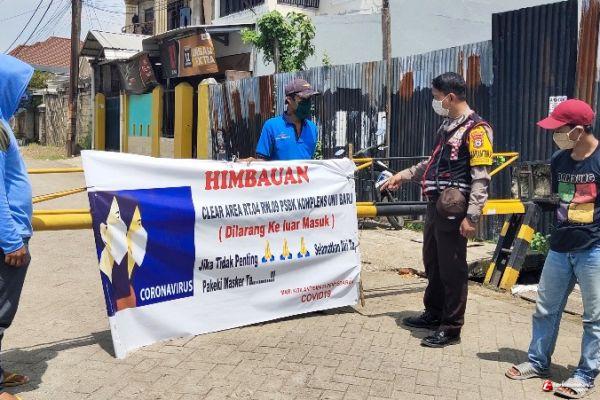 Kompleks UMI Baru di kelurahan Karampuang Kecamatan Panakkukang Bripka Syahri Sabtu (18/4/2020) memberi pengarahan kepada warga yang bertugas melakukan sterilisasi lingkungan.