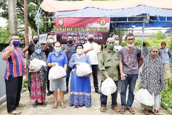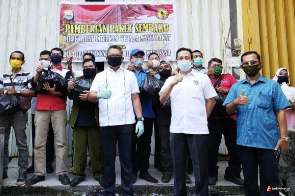 Prihatin Pandemi Covid 19, DItintelkam Polda Sulsel Bagi 4.000 Paket Sembako