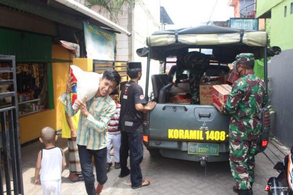 "ini kami bagikan 100 paket sembako untuk warga terdampak Covid-19 yang berisi tiap paket beras 5 kg, minyak goreng 2 liter, minuman 2 botol dan masker 2 buah" ujar Dandim