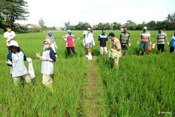 Seperti halnya yang dilakukan Babinsa Koramil 02 Jeruklegi, Kodim 0703 Cilacap, Serma Warso bersama Petugas Pengawas Lapangan Kecamatan Jeruklegi saat terjun ke area sawah milik petani setempat, salah satunya Fatudin warga RT 03 RW 02 Jln. Pandawa, Desa Tritih Wetan, Kecamatan Jeruklegi, Selasa (16/6/20)
