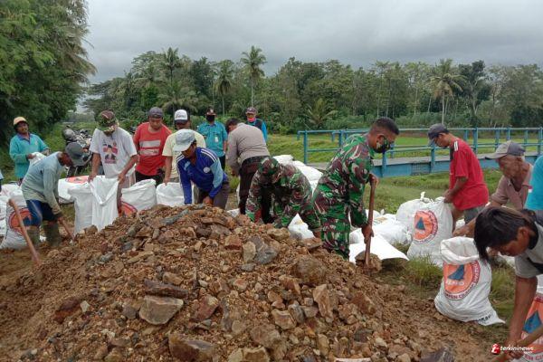 Dihantam Air Bah, Tanggul Irigasi Jebol, Danramil 09/Kawunganten Pimpin Kerja Bakti Perbaikan Tanggul