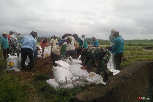 Untuk membantu kesulitan masyarakat akibat sawahnya tertimbun material lumpur, Aparat TNI dan masyarakat serta unsur terkait lainnya berupaya untuk memperbaiki tanggul yang jebol dengan menggunakan 350 karung bantuan dari BPBD yang diisi tanah. "Walaupun sifatnya sementara diharapkan bisa menahan tumpahan air dan lumpur apabila hujan deras datang lagi, sehingga sawah yang berada di area tersebut aman dan dapat ditanami kembali," imbuhnya.
