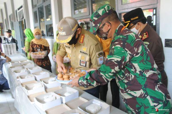 Cilacap - Peduli Covid-19 menuju New Normal di wilayah Kabupaten Cilacap, Kodim 0703/Cilacap terus bersinergi dengan Aparat Kepolisian dan Pemda Cilacap memberikan bantuan kepada masyarakat yang terdampak Covid-19 yaitu salah satunya yaitu kegiatan Dapur Lapangan. Setelah dilaksanakan di beberapa wilayah di Kabupaten Cilacap, kegiatan Dapur Lapangan kali ini di dirikan Kecamatan Jeruklegi tepatnya di halaman Gedung SKB Cilacap Desa Jambusari, Kamis (18/6/20).
