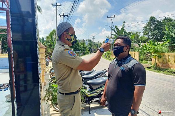 Seluruh jamaah wajib pakai masker dan cek suhu badan