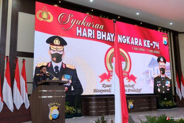 "Peringatan Hari Bhayangkara kali ini merupakan momentum yang sangat tepat bagi jajaran Polri untuk melakukan introspeksi dan retrospeksi terhadap kinerja yang telah dilakukan selama ini ,serta sejauh mana kita mampu mengemban amanah yang dipercayakan oleh masyarakat dan negara ini," tambah Kapolda