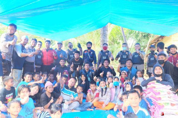 Giat dilanjut dengan pergerakan menuju 4 Posko pengungsian yang terletak di Jl Lingkar Desa Radda Kec Masamba Kabupaten luwu utara untuk mengantar bantuan dan memberikan trauma healing berupa motivasi dan semangat kepada warga yang terdampak dilokasi pengungsian