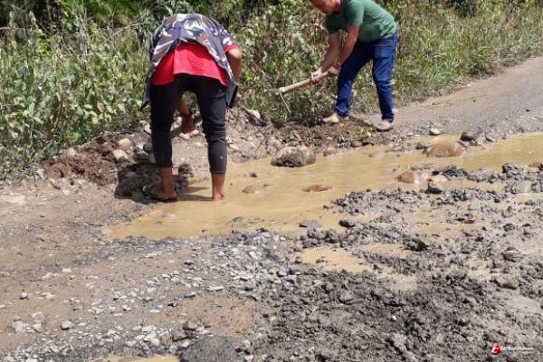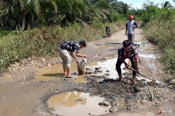 Salah satu pengendara, Pilihan Dalimunthe mengucapkan terima kasih kepada sejumlah AMPI Kecamatan Padang Bolak Tenggara yang telah melaksanakan gotong royong menutupi jalan berlobang di Sepanjang jalan Nagasaribu. ( Parsa Siregar/*)