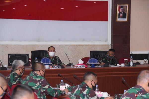 MAKASSAR - Pangdam XIV/Hasanuddin Mayjen TNI Andi Sumangerukka, S.E, memberikan pengarahan kepada para pejabat baru di lingkup Kodam XIV/Hasanuddin bertempat di Ruang Bina Yudha Makodam Jl. Urip Sumoharjo Makassar.