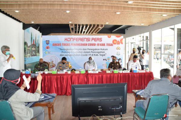TEGAL -Tim gugus tugas penanganan covid-19 Kab Tegal melakukan konferensi pers di Tracking Space, Trasa Co-working Space, Rabu (9/9/2020)