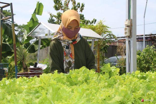 TEGAL – Pertanian hidroponik di lahan sempit kian digandrungi, utamanya warga yang tinggal di perkotaan. Pembatasan aktifitas sosial selama pandemi Covid-19 tak pula sedikit yang dimanfaatkan warga untuk menanam sayuran organik. Selain menjadi sumber pangan keluarga, sebagian pelaku menjadikannya sumber penghasilan. Salah satunya Dian Fifi Apriliani (36), warga Perumahan Griya Kabunan Asri di Desa Kabunan, Kecamatan Dukuhwaru.