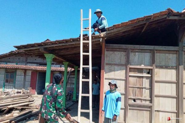 Di sela-sela kesibukan menyelesaikan pekerjaan di sasaran, personel Satgas Pra TMMD 109 Kodim 0715/Kendal menyempatkan diri membantu warga memperbaiki atap rumah milik Ngatimen.