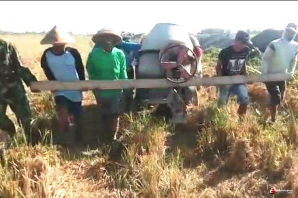 Gotong Royong TNI Bersama Warga Pindahkan Mesin Molen