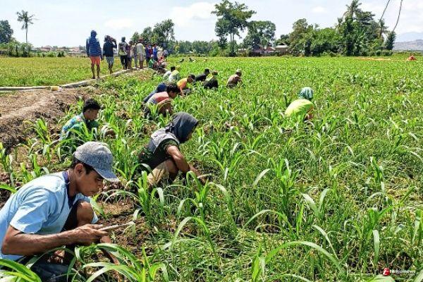 Diketahui benih ditanam 500 Kg, pada lahan seluas kurang lebih 30 are, sebagai demplot (percontohan) bagi petani bawang merah setempat dengan menggunakan Nutrigrow Plus (NP) produk dari PT BMM Group Indonesia berharap capaian panen hingga 5-6 ton ,walaupun posisi tanam kemarin kurang padat, dan harga panen saat ini berkisar 10.000 sampai 13.000/Kg.