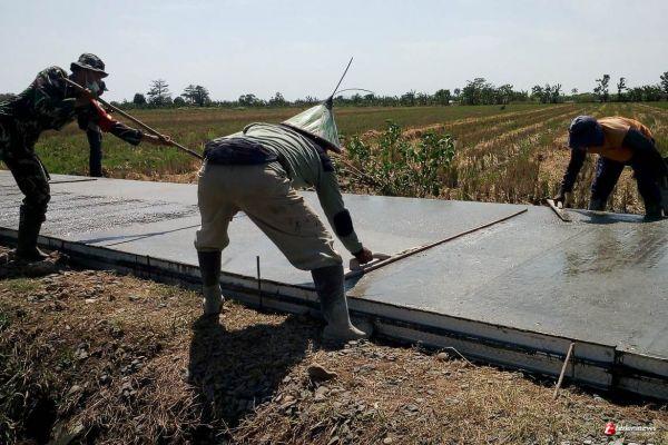 Profesional yang Terlihat di dalam pengerjaan pengecoran jalan TMMD Reguler ke-109 Kodim 0715/Kendal sepanjang 1,2 KM di Desa Sendang Kulon, Kecamatan Kangkung, Kabupaten Kendal, Jawa Tengah, Kamis (17/9/2020).