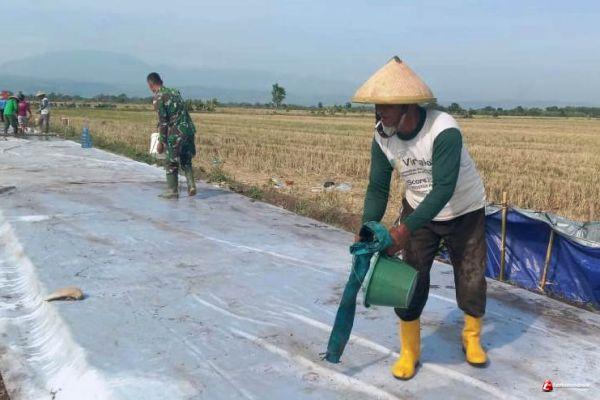Jaga Kualita Jalan TMMD, Pendinginan Cor Rabat Beton Dilakukan