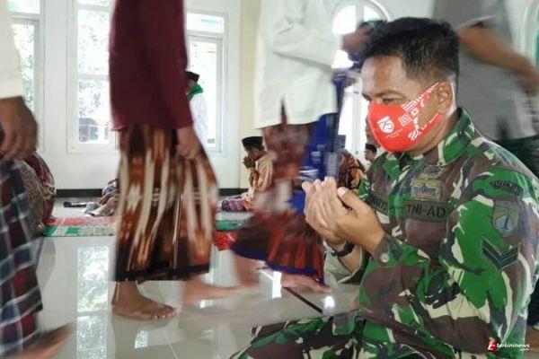 BREBES– Adalah Sertu Sunaryo, anggota Koramil 12 Bantarkawung, Kodim 0713 Brebes, tetap menyempatkan diri untuk menunaikan kewajibannya sebagai seorang muslim, di tempat saat ini ditugaskan, yaitu di lokasi TMMD Reguler 109 Brebes, di Desa Desa Kalinusu, Kecamatan Bumiayu, Kabupaten Brebes, Jawa Tengah.