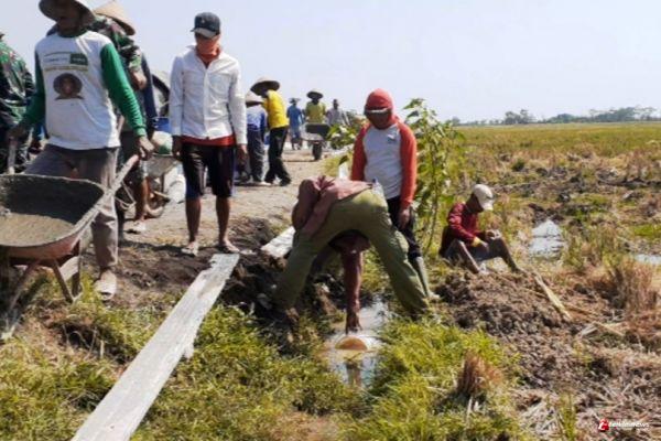 Satgas TMMD Reguler ke -109 Kodim 0715/Kendal di Desa Sendang, Kulon Kecamatan Kangkung, Kabupaten Kendal tetap semangat walaupun pasokan air buat pengecoran sangat minim.