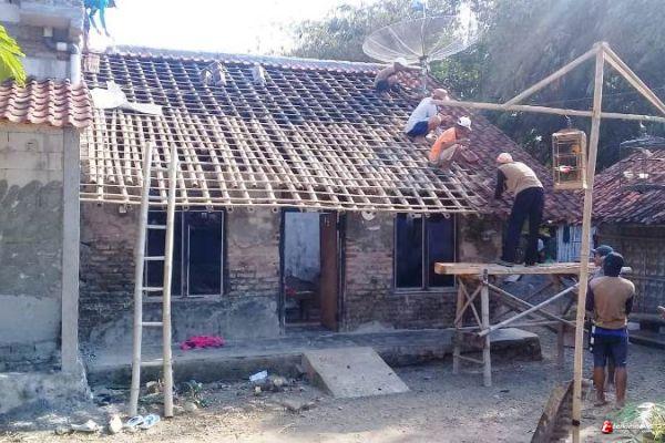 Sementara disampaikan Kadus Karanganyar, Sakwad (41), pekerjaan rehab rumah salah satu warganya itu dimulai dengan menurunkan genteng rumah secara gotong royong.