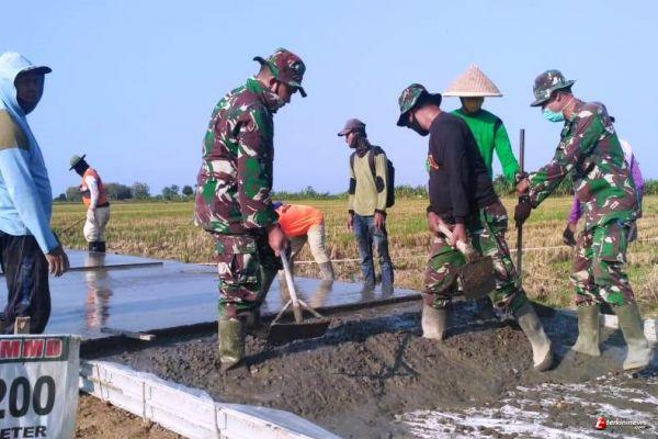 Bersatunya warga dan satgas TMMD dari kodim 0715/Kendal semakin terjalin erat, terlihat dari cara mereka bekerja,kompak tidak pilih-pilih sesekali tertawa bercanda.