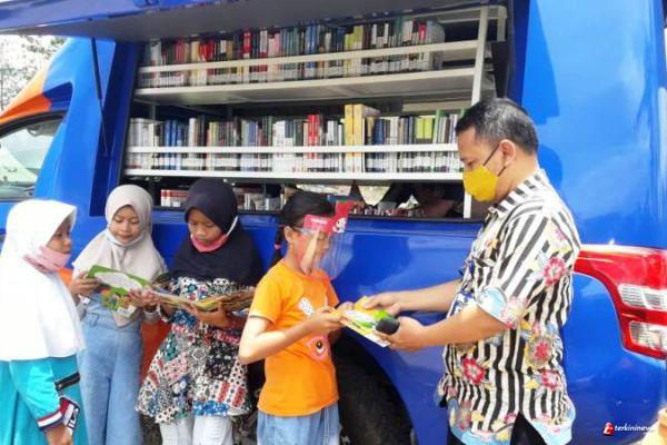 BREBES – Dinas Arsip dan Perpustakaan Kabupaten Brebes menghadirkan perpustakaan keliling di hari pembukaan TMMD Reguler 109 Kodim 0713 Brebes, di Lapangan Desa Kalinusu, Kecamatan Bumiayu, Kabupaten Brebes, Jawa Tengah. Selasa (22/9/2020).